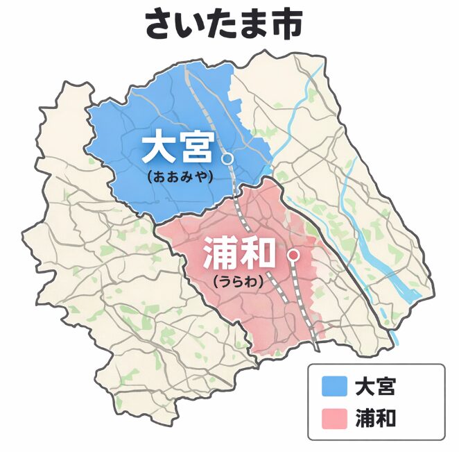 大宮と浦和は、同じさいたま市。